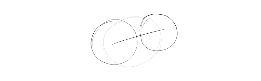 在它的正面和背面附上两个圆圈。这将是躯干(前面的大圈)和臀部(后面的小圈)。使它们倾斜以创建3D姿势。