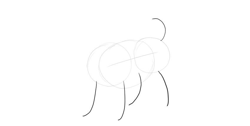 描绘腿部和尾部的长度和方向。腿不应比躯干长。
