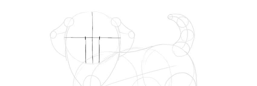 在圆形“头”的中心画一个十字。然后在下半部分画出鼻子的宽度。