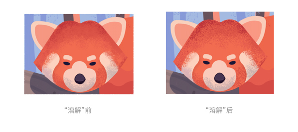 2、我们在做图过程中会用到“溶解”效果,溶解效果颗粒感会更强一点,不喜欢太明显的颗粒感也可以忽略这一步,下面是使用“溶解”前后的对比。