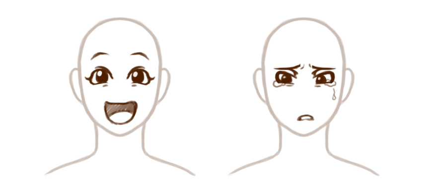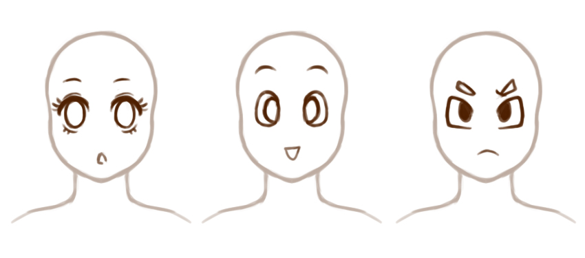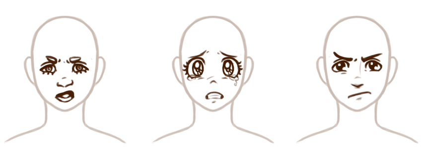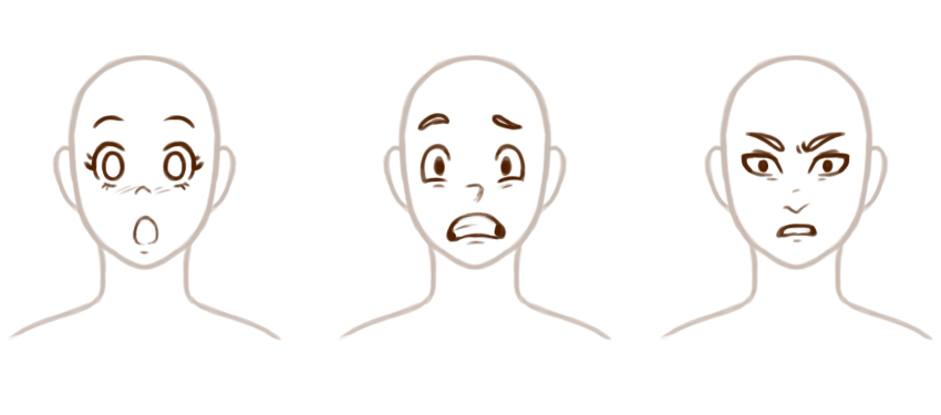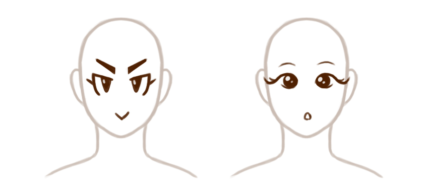这里有一些例子。两者之间的唯一区别是眼睛。但是,请注意第一个示例看起来很悲伤而平淡,而第二个示例看起来很愤怒。诸如比例和形状之类的艺术元素可以帮助以视觉方式传达概念。