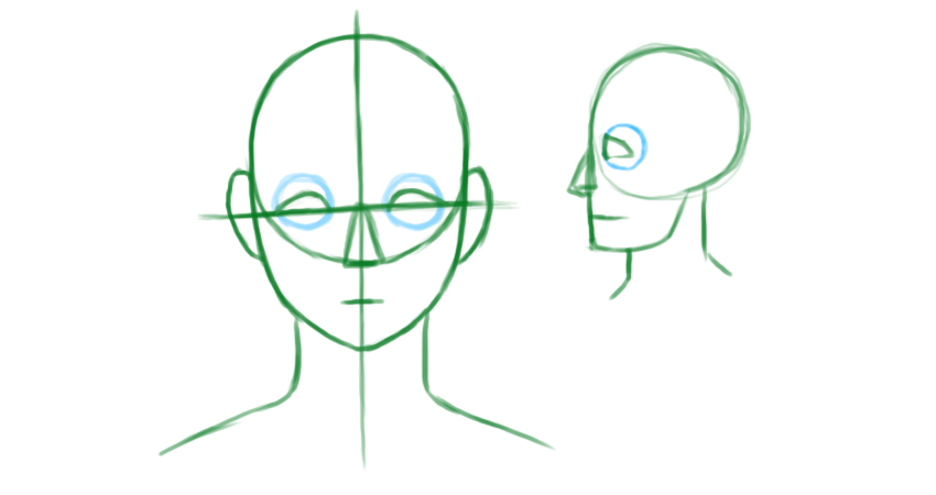 通常,眼睛往往具有相同的距离,并且它们之间的距离大约为一只眼睛。再次,这是根据现实的比例-风格作品可以夸大这些比例。