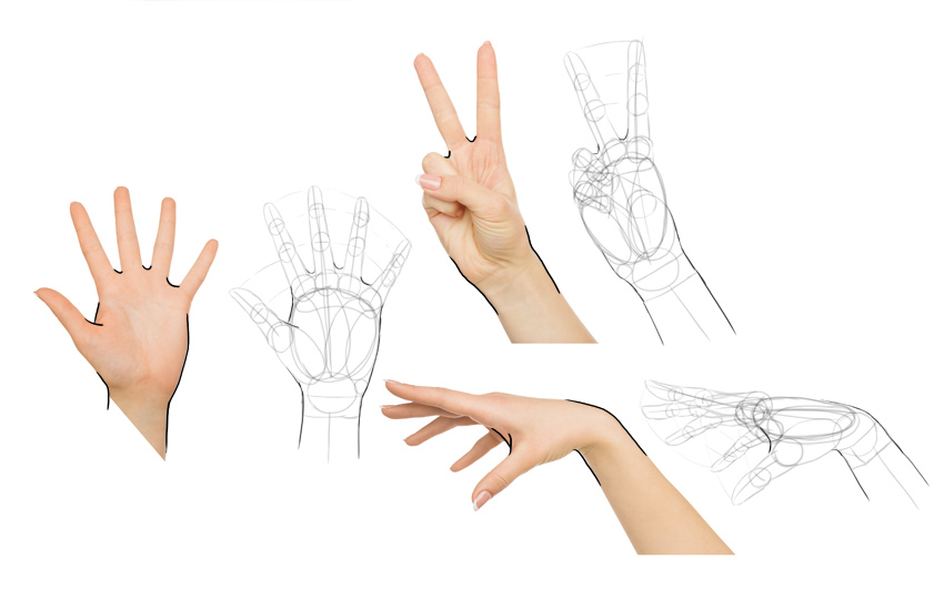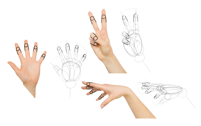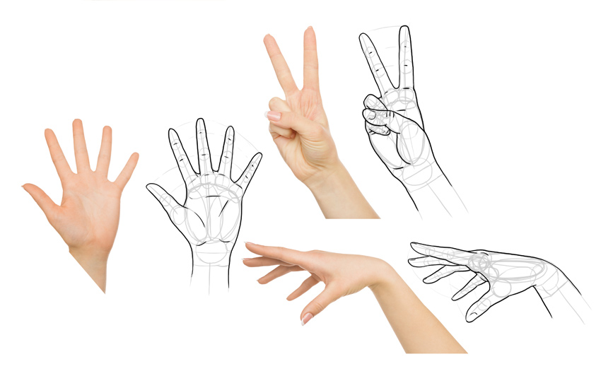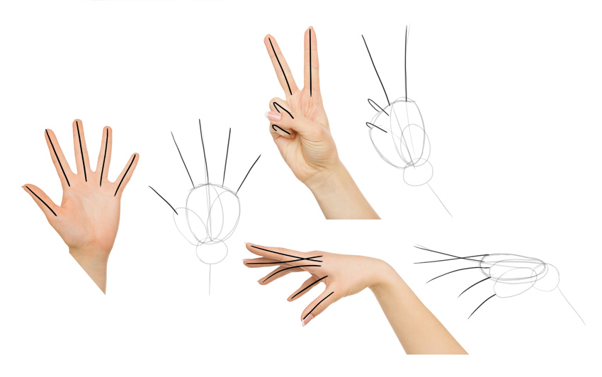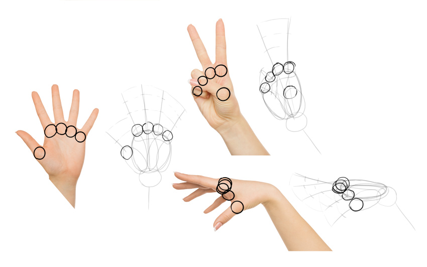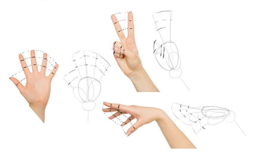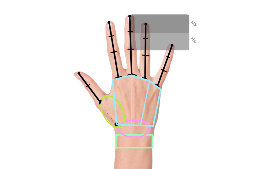 绘制正确的手需要知道一些比例。您无需严格限制它们,但请记住它们并尝试遵循它们结构。