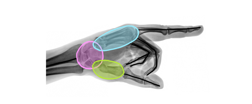尽管腕骨似乎埋在手中,但有一根骨头向外伸出(双峰形)。您可以感觉到它,并在小手指的枕头下看到它。