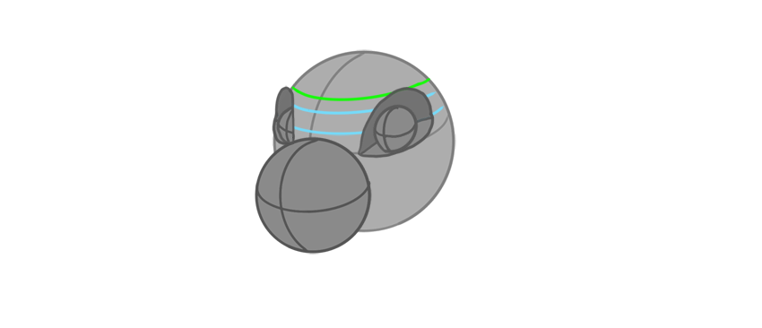 脸颊必须与头部的形状相结合。有时它们会改变头骨的整个形状。