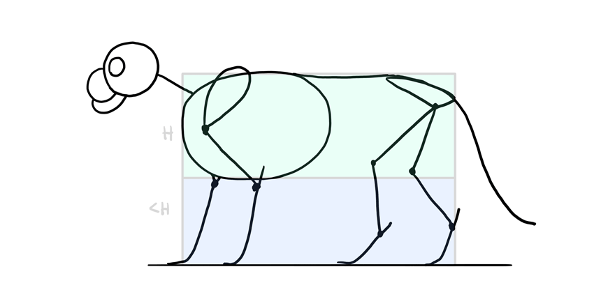 让我们从头骨开始。无论动物的头部形状如何,始终将其描述为球。
