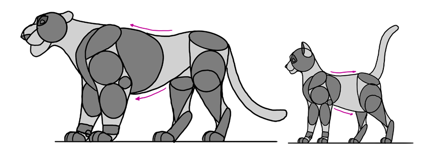 一旦知道了这种基本猫的身体结构,就可以对其进行修改以制造其他物种。没有一种正确的方法来绘制每种动物-您只需要找到某种类型的猫的特征,然后夸大其结构和形状即可。