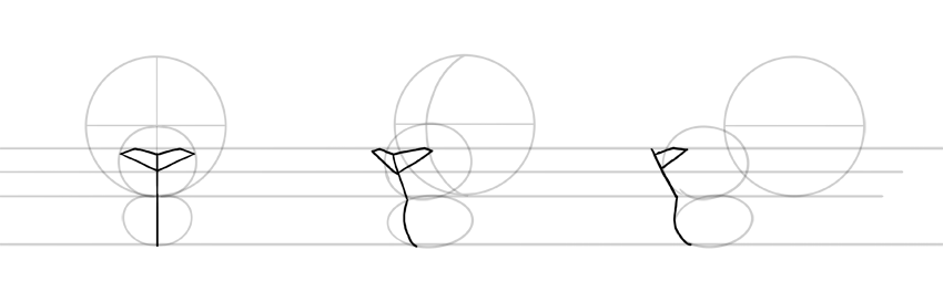 要绘制任何动物的身体,您需要了解其结构和形状。在绘制结构时,您可以通过将身体缩小为“骨架”来确定比例和姿势。猫的身体比例取决于物种。在下面,您可以看到迪士尼狮子的结构。下半身的特征是比上半身高或短。