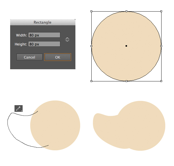 让我们从狗的头开始,使用椭圆工具(L)制作一个 80 x 80像素的圆圈。用明亮的米色填充圆圈。