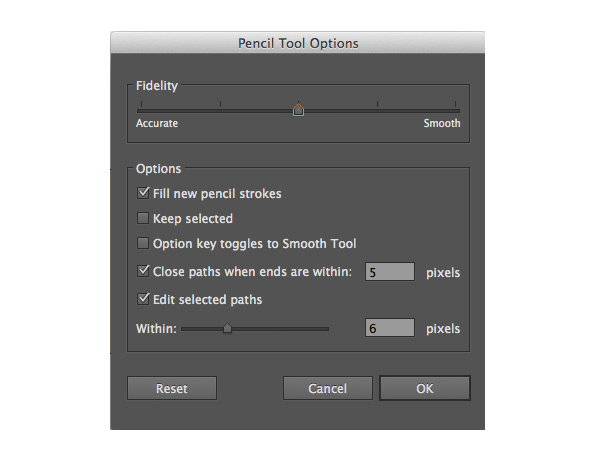 您可以通过在“ 工具” 面板中双击“ 铅笔工具”(N)来打开“ 选项”窗口。在这里,您可以更改“ 保真度”, 如果希望线条更详细并包含