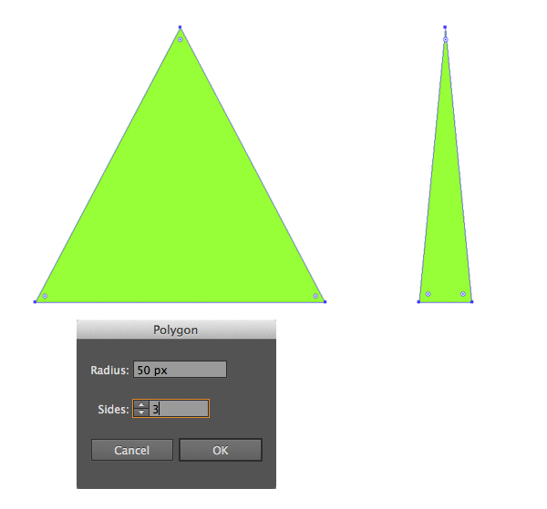 让我们更详细地讲吧。首先,采用“ 多边形工具”并制作一个三边形形状。然后压扁形状,形成一个狭窄,尖锐的三角形。