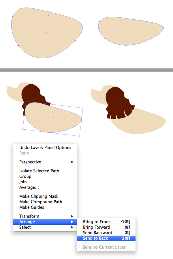 键单击并发送到背面,或按Shift-Control- [ 将身体形状移动到所有其他元素下方。