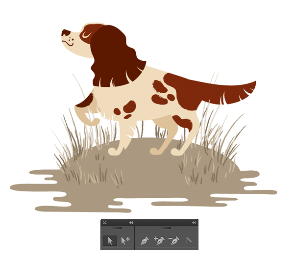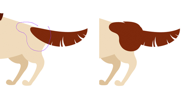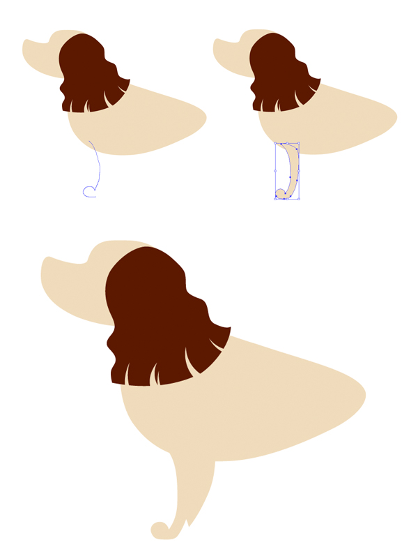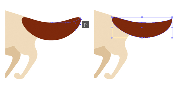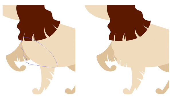 使用铅笔工具(N)形成我们西班牙猎狗的后腿。复制创建的形状和发送 它到返回(Shift键控制- [)。使副本更暗,然后将其向左移动,形成第