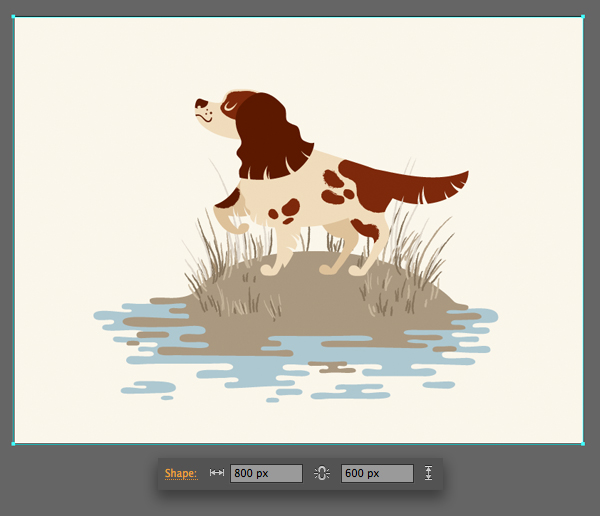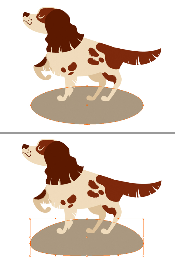 为了使我们的插图看起来平衡且完整,让我们将狗放在某种地面上,用秋天的精神填充我们的形象。使用椭圆工具(L) 将灰棕色形状放在狗的