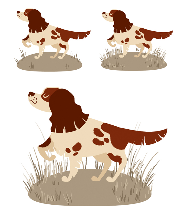 笔在西班牙猎狗的皮毛上创建微妙的纹理效果,使其看起来更加有趣和逼真。让我们开始吧!