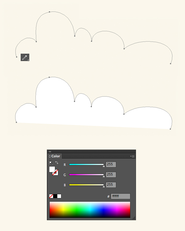 白色填充颜色之后,我们将在云的底部根据需要获得一条水平直线。
