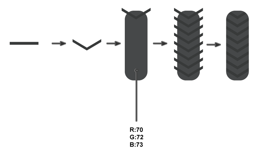 让我们添加前轮。首先,创建一个小的深灰色矩形。在第一个图像中,您可以看到放大的形状。在矩形的顶部和底部的中间,添加两个新的锚点