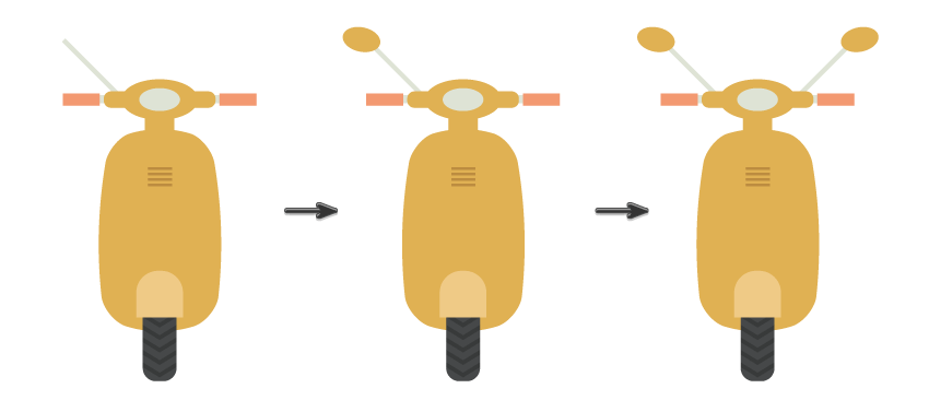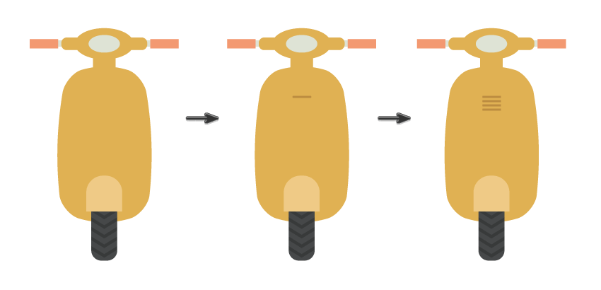 我在GraphicRiver上浏览了许多踏板车图像,以提醒自己(实际上是要学习)这种运输方式的外观。在将插图调整到适合初学者的水平之后,我