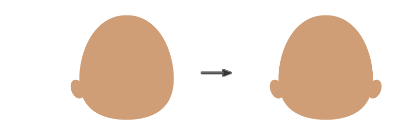 使用椭圆工具(L)创建一个小椭圆并将其向左旋转。这是左耳,所以我们将其放在头的左侧。选中后,请使用“ 反射工具(O)”,按住Alt键