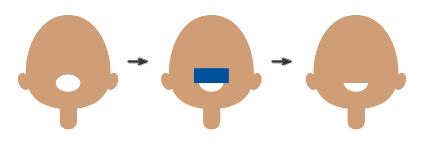 要创建嘴巴,请绘制白色椭圆。用任何“ 填充”颜色矩形覆盖此椭圆的上半部分。在选择矩形和椭圆形的同时,转到“ 路径查找器”面板,然