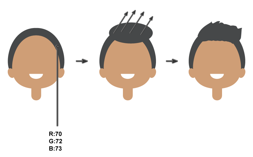 要添加男孩的手指,请删除 “ 笔触”颜色并设置与面部相同的“ 填充”颜色(使用“ 滴管工具(I)”)。绘制一个将与Shift和Alt键以及