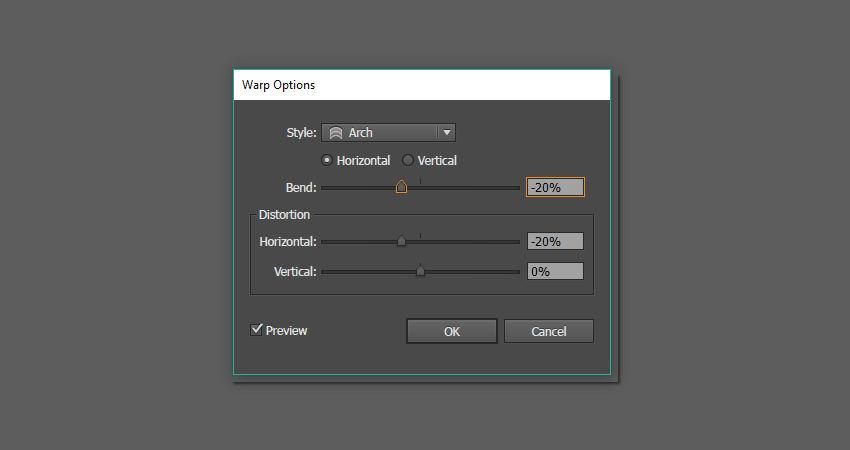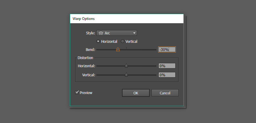 我们下一步要做的就是弯曲这条线。在保持选中状态的情况下,转到“ 效果”>“扭曲”>“弧”。在新的对话窗口中,调整您在下面的第二个