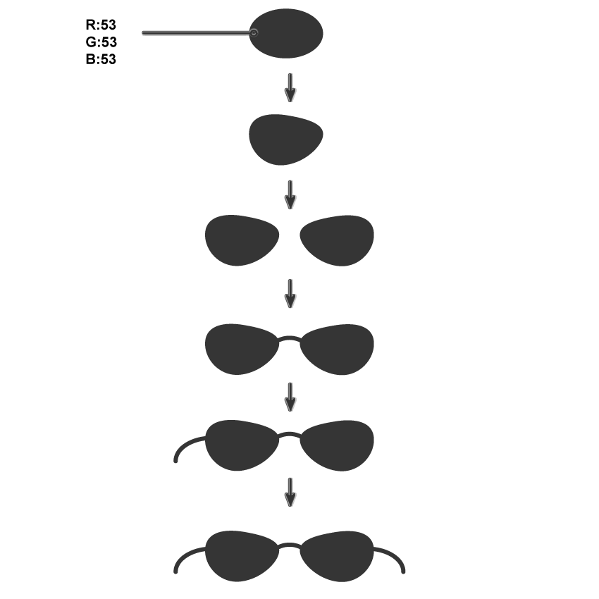 创建左镜脚的垂直反射以获得右镜脚。太阳镜准备好了!