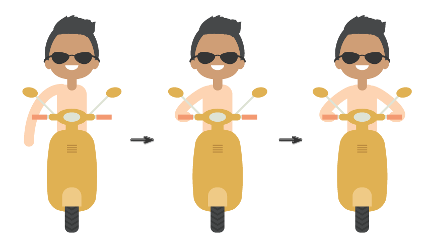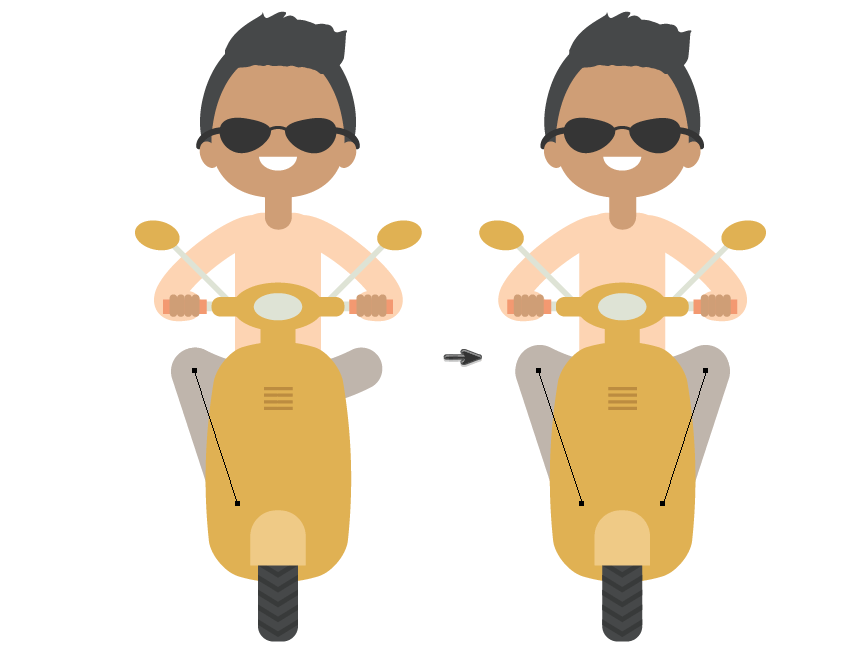 再拍复制手指。只需按住Shift和Alt键并将它们向右拖动,即可将其放置在踏板车的右手柄上。这是他的左手。