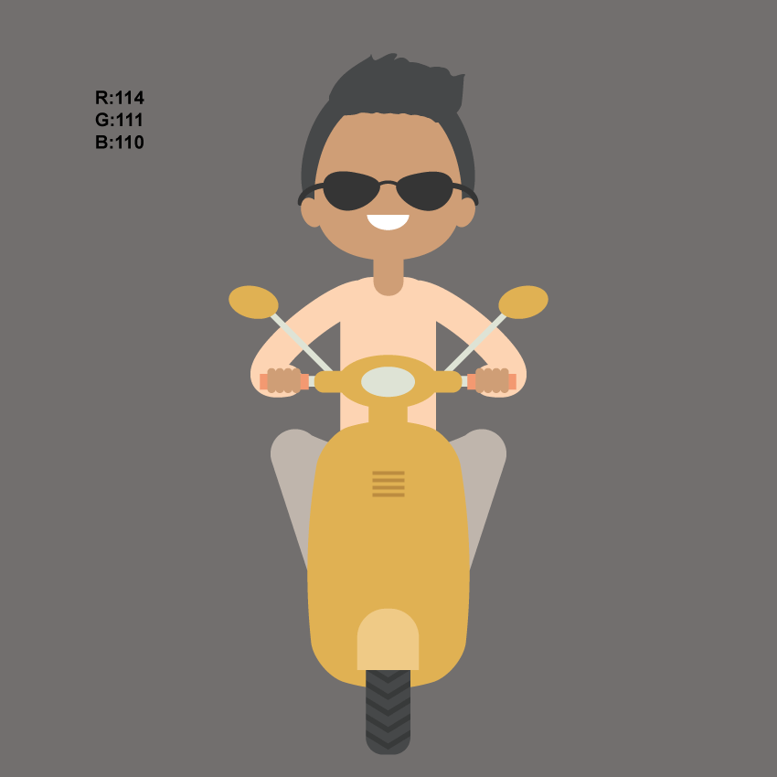 由于男孩在夏天骑摩托车,所以我们给他戴一副太阳镜。创建一个具有深灰色填充颜色的椭圆。要创建如下所示的太阳镜形状,请转到效果>变