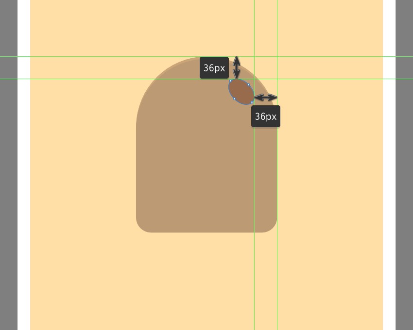 通过使用16 x 16 px的圆圈为其左主体创建主要形状来开始工作,我们将使用进行着色#996B4B。将其放置在距较大形状的左边缘52像素处,距
