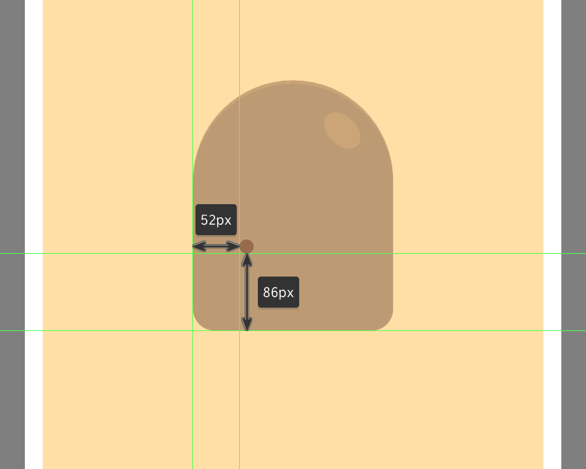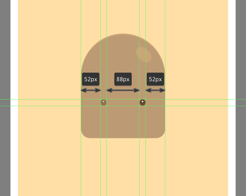 使用我们刚刚完成的工作的副本(Control-C > Control-V)创建右眼,将其放置在较大形状的另一侧,确保保持相同的52 px间隙。