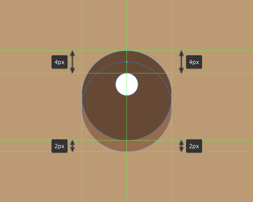 通过复制上一步的形状(Control-C> Control-V)结束当前的眼睛,我们将通过先将其颜色更改为#664732,然后将其推到顶部2 px来进行调整。