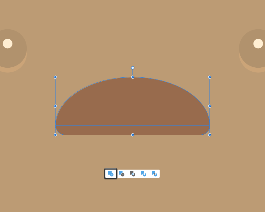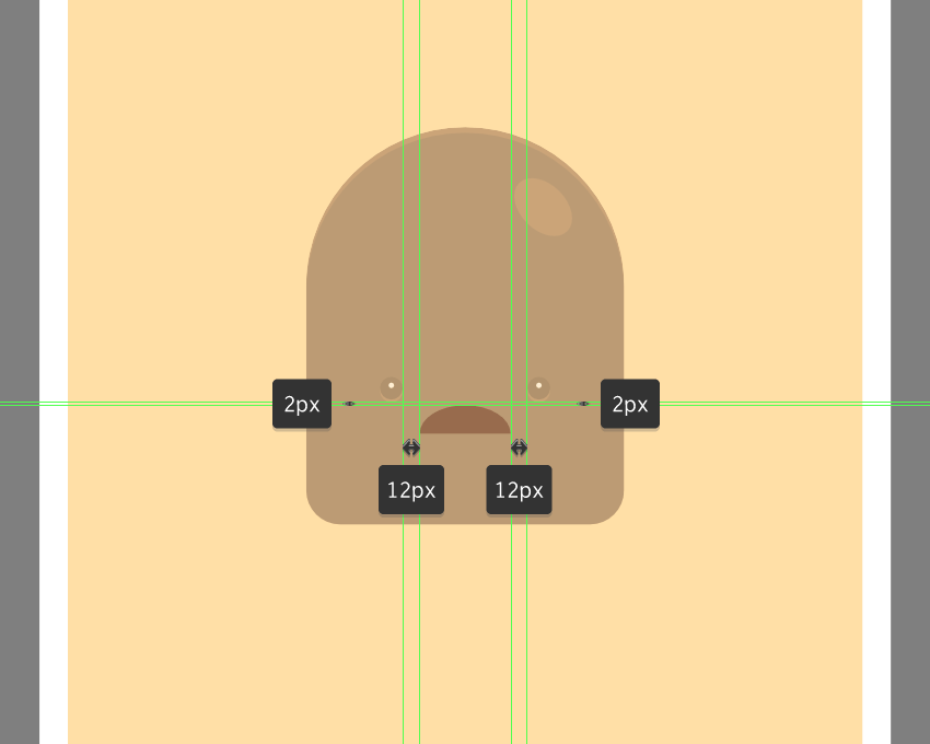 使用两个8 x 8 px的圆圈(#7C5B42)添加侧面部分,我们将通过移除其外部节点,然后将其其余节点合并来进行调整。完成后,请确保选择并
