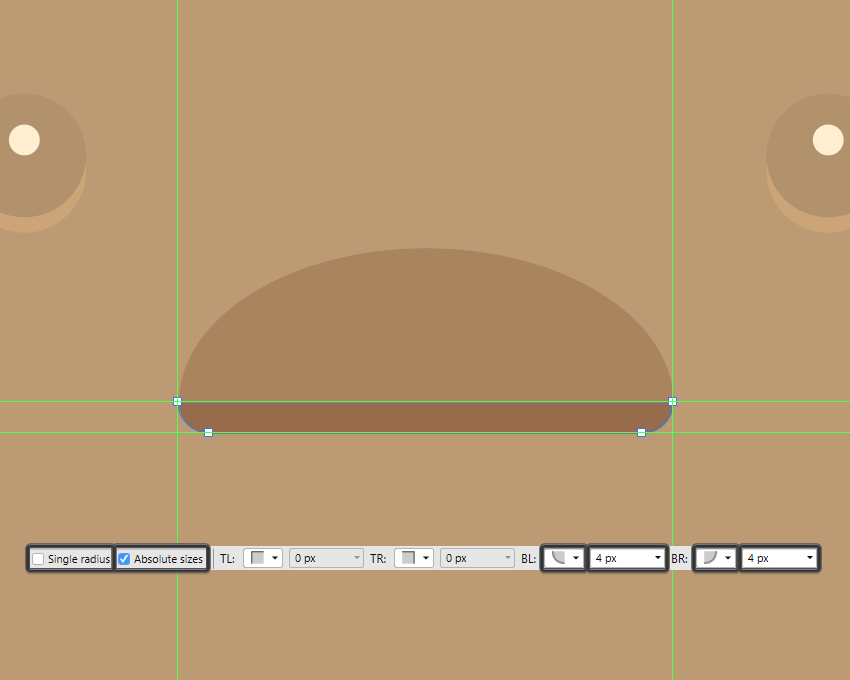 使用64 x 4 px矩形(#996B4B)添加嘴的下部,我们将通过将其底角的半径设置为4 px进行调整,将得到的形状置于下方。