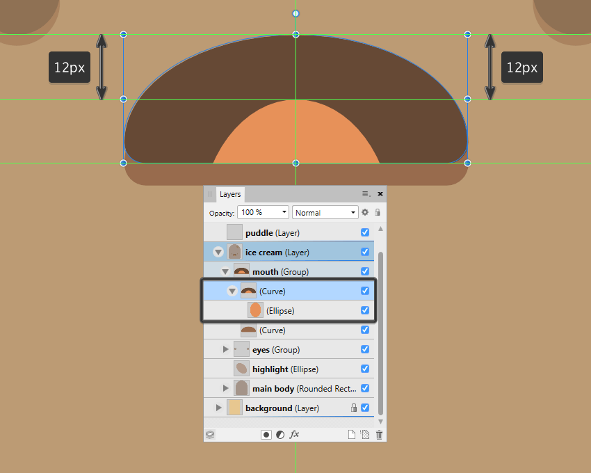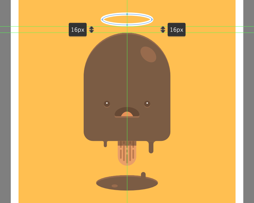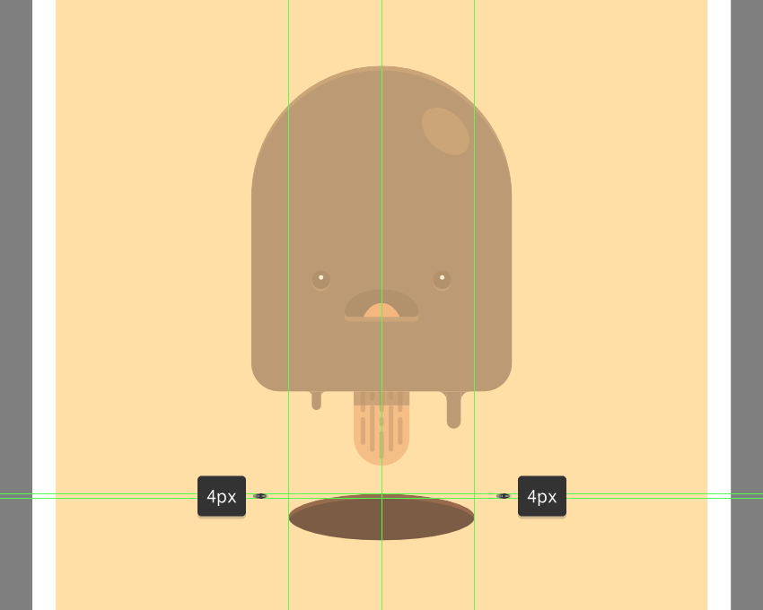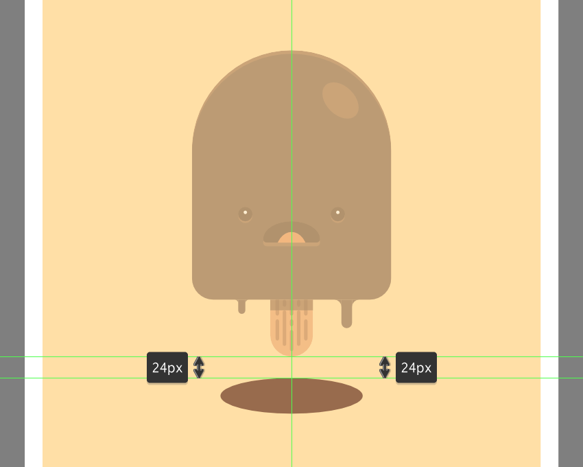首先创建一个160 x 40 px的椭圆,我们将使用该椭圆进行着色#996B4B ,然后将其与基础的艺术版居中对齐,将其放置在距冰淇淋木棒24 px的