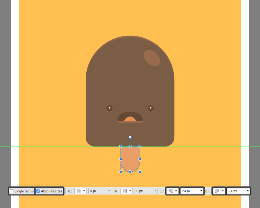 使用48 x 64 px的矩形(#EAA068)创建木棍的主要形状,我们将通过将 其底角的半径(BL&BR)设置为24 px进行调整,将所得形状放置在