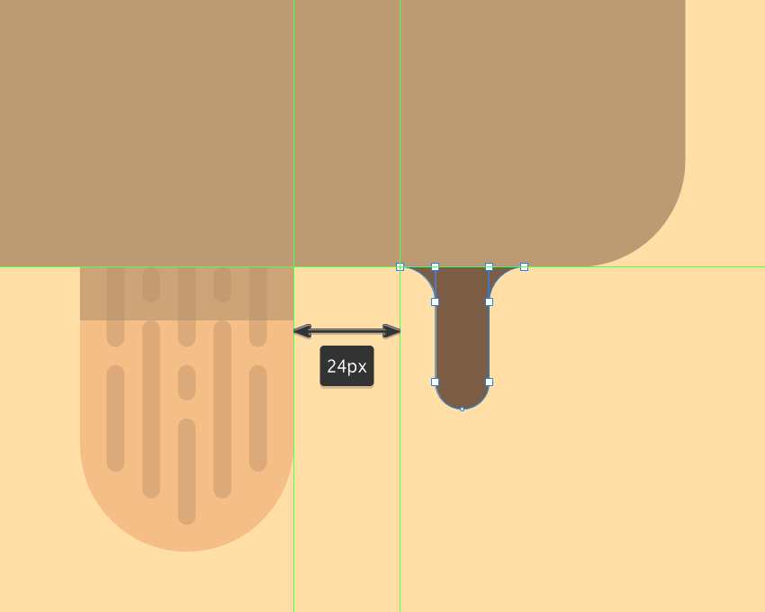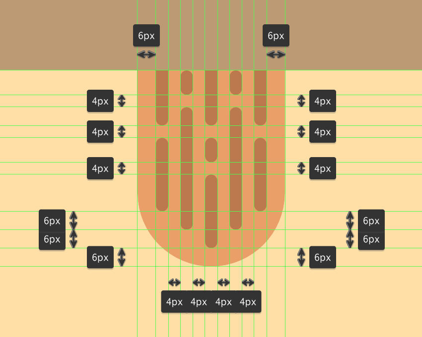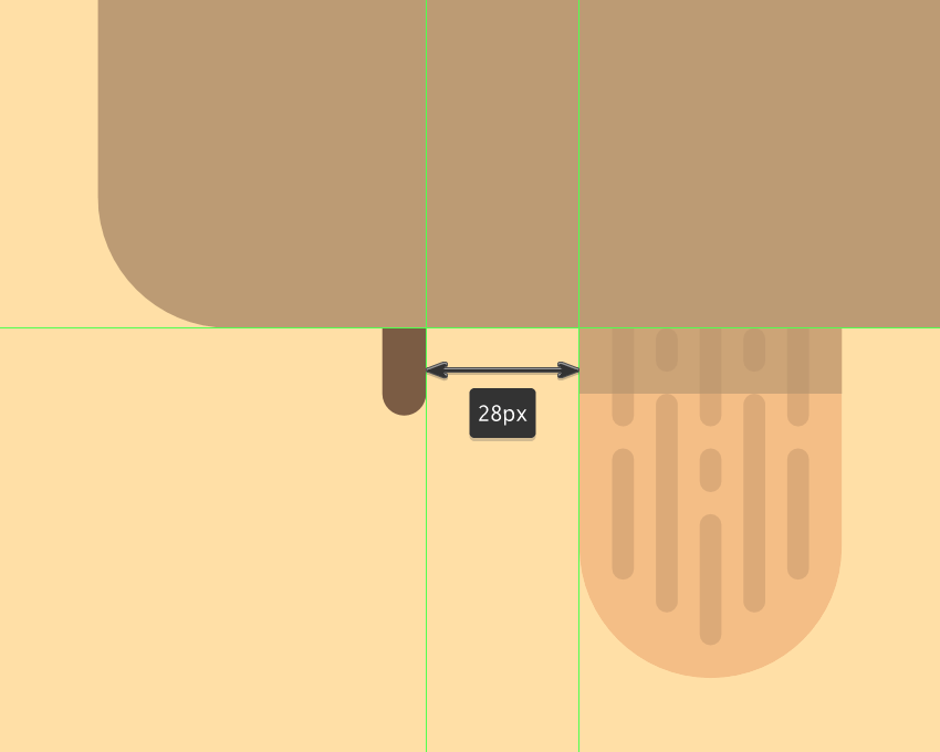 使用几个4 px圆角半径为2 px的圆角矩形(#BC794B)添加垂直详图线,我们将在水平方向和垂直方向上相互放置4 px。完成后,选择并分组(