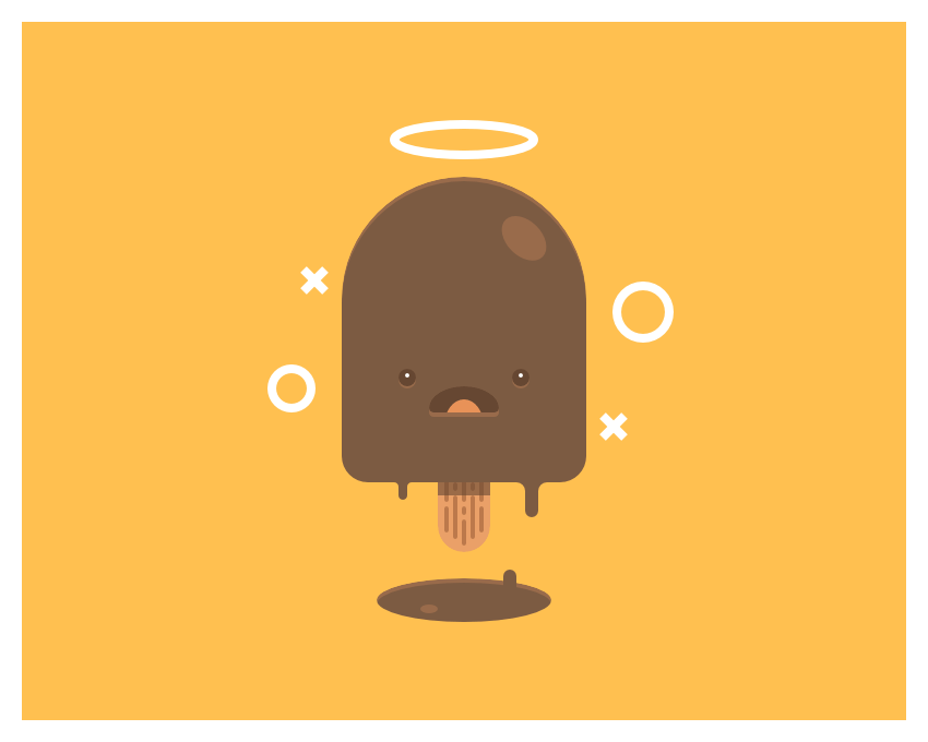 将您自己置于冰淇淋的左下角,并使用8 x 16 px矩形(#7C5B42)创建其较细滴的主要形状,我们将通过将其下角的半径(BL& BR)设置为 4px