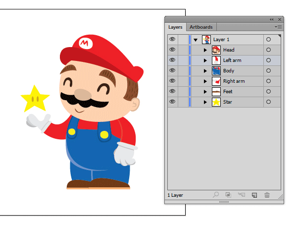 为了使事情变得简单,我们将Mario分为几组:头部,手臂和身体/腿部。