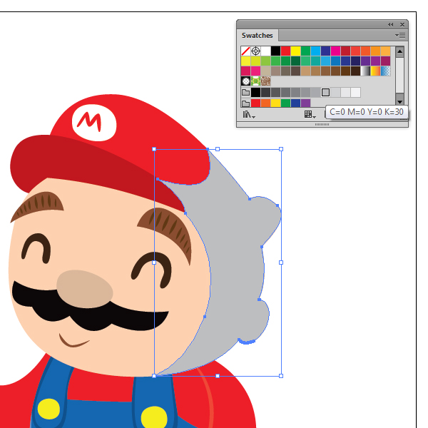 现在,单击我们刚得到的形状,然后打开“ 色板”面板(“ 窗口”>“色板”)。我们将需要一个浅灰色的阴影作为阴影,因此请选择灰色行中