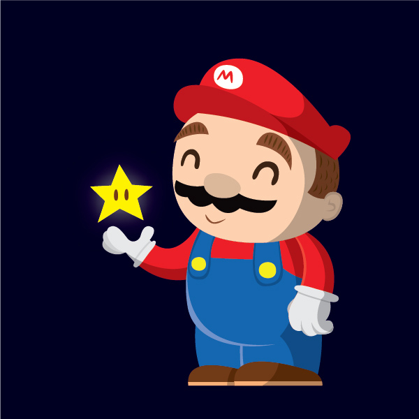 仔细看你要加阴影的人物。定义光源的位置,以及光线如何落在对象上。在这种情况下,我让超级马里奥持有著名的星星,这是我们的光源,所以