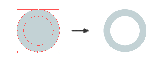 在保持相同的填充颜色的同时,使用椭圆工具(L)创建两个圆(要创建一个偶数圆,请在绘制时按住Shift键)。在大圆圈上画一个小圆圈。然