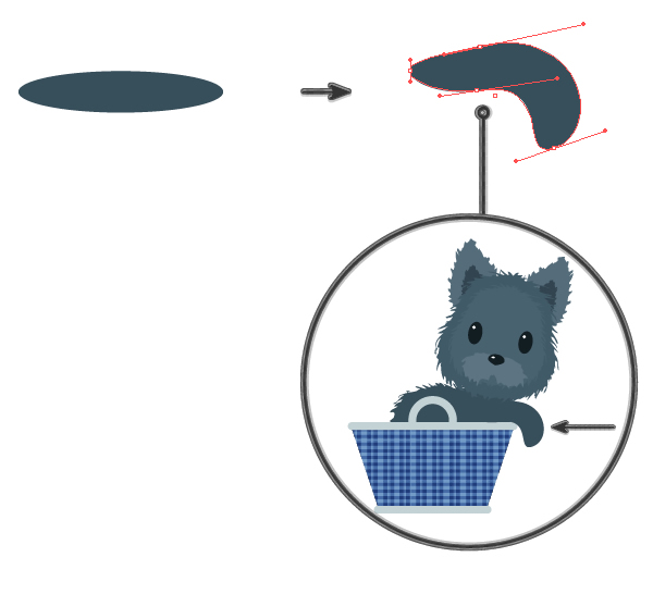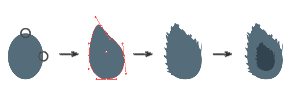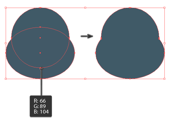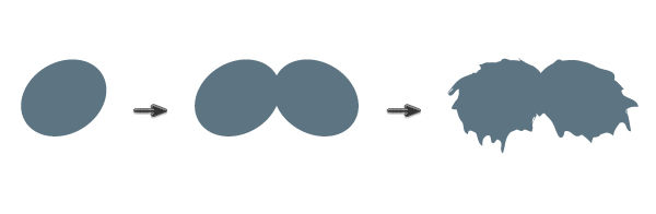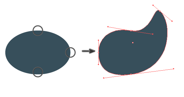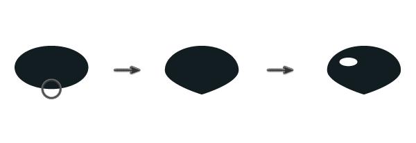 使填充颜色比面部黑(R = 55 G = 78 B = 91),并绘制一个椭圆。之后,使用直接选择工具(A)并移动三个手柄以创建形状,如下图所示。