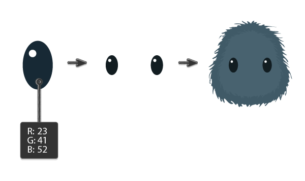 让我们加眼睛。首先使用椭圆工具(L)创建两个椭圆:一个大的深蓝色椭圆,一个小的白色高光。然后 复制粘贴 以完成眼睛设置,然后将那两