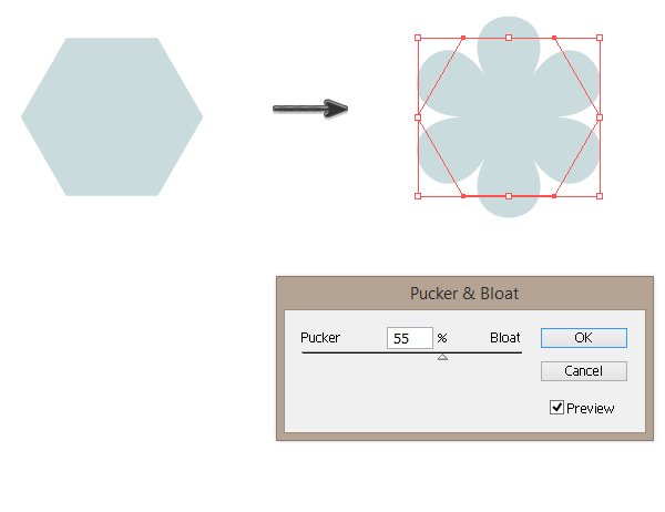 R = 202 G = 219 B = 221。要从中制作花朵,请转到效果>扭曲和变形>褶皱和膨胀 ,并将滑块设置为55%。花准备好了。