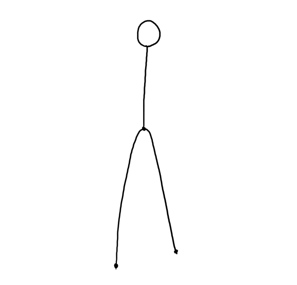 让我们继续绘制身体!从两个简单的窄棒开始画腿。