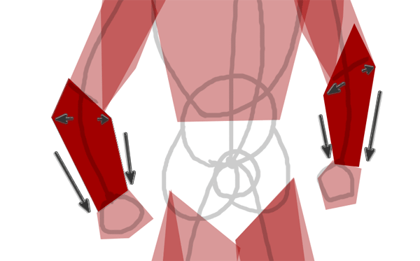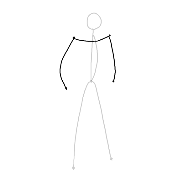 现在,添加肌肉。不必太复杂-只需在木棍外部放置一个点即可创建“凸点”,而在内部则要创建一个空腔即可。