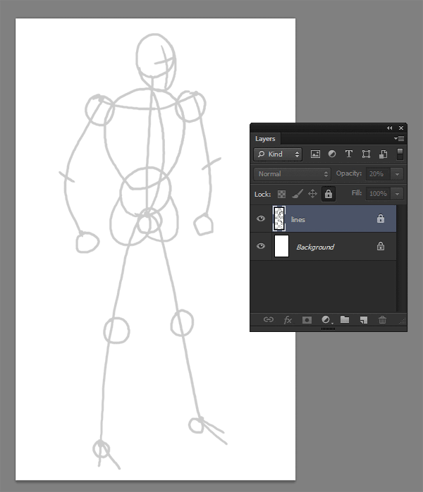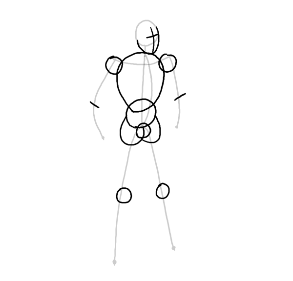 没有任何指导线就很难创建角色。让我们准备一个简单的草图,它将作为其余图片的骨架。传统上,可以用铅笔随意做。如果您不喜欢绘图,也