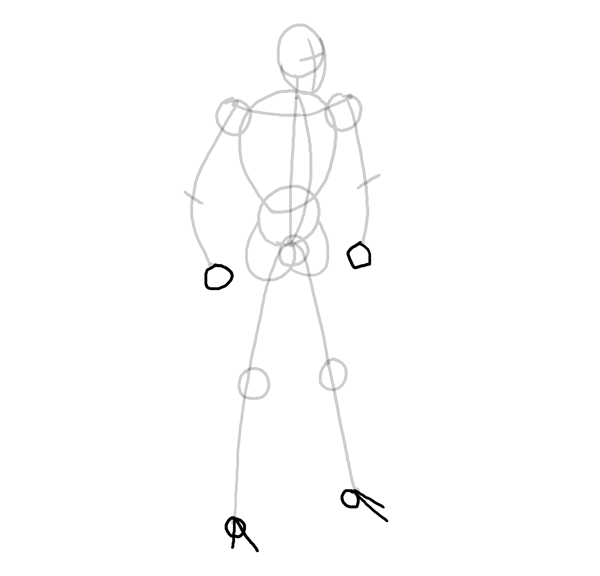 为大脚趾和小脚趾添加手,脚跟和线条。