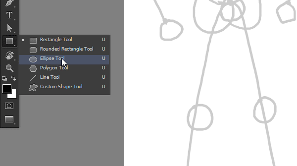 找到矩形工具(U),单击并按住直到出现列表。然后选择“ 椭圆工具”。